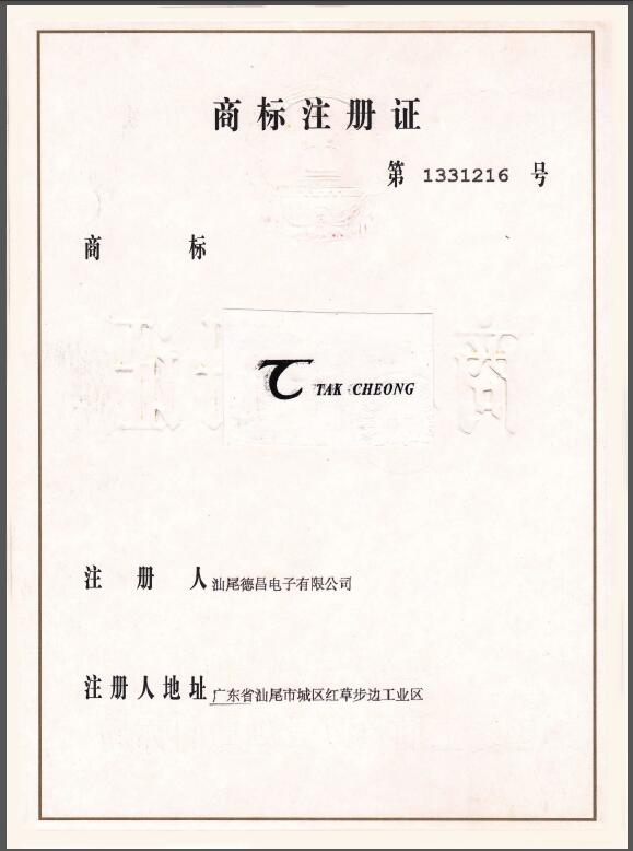 是汕尾德昌電子有限公司在中國的注冊商標(biāo)之一,受法律保護(hù),侵權(quán)必究。